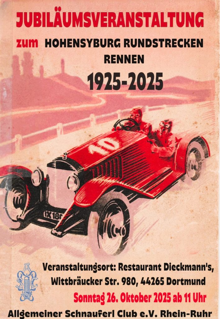 Vor 50 Jahren waren wir mit unserem ersten DIXI bei einer besonderen Veranstaltung. Das war das erste Oldtimertreffen nach dem Krieg auf der Hohensyburg im Süden Dortmunds. Dort waren auch fünf Dixis am Start. Nun hat der ASC wieder die Initiative ergriffen anlässlich zum 100jährigen Ereignis des Hohensyburgrennens dort ein Treffen zu veranstalten.