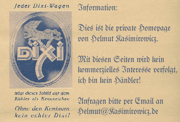 Ihr wisst ja: Bei Fragen oder Informationen zu den kleinen Oldtimern aus Eisenach „BMW – DIXI, Ihle, Sonderfahrzeuge“ bitte Kontakt aufnehmen mit der DIXI -IG. Ansonsten schaut noch einfach mal auf meine alte Homepage, die nicht mehr aktualisiert wird.