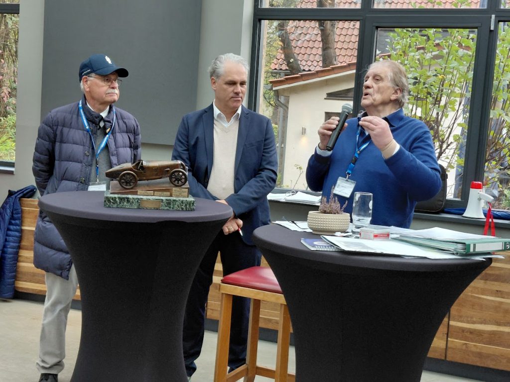 Wir wurden vom Präsidenten der Landesgruppe Holger Ahlefelder herzlichst begrüßt. Wir kennen uns schon über 50 Jahre. Auch war es ein Wiedersehen mit sechs anderen Schnauferlfreunden, die vor 50 Jahren an einem Revival an dieser Rennstrecke teilgenommen haben.