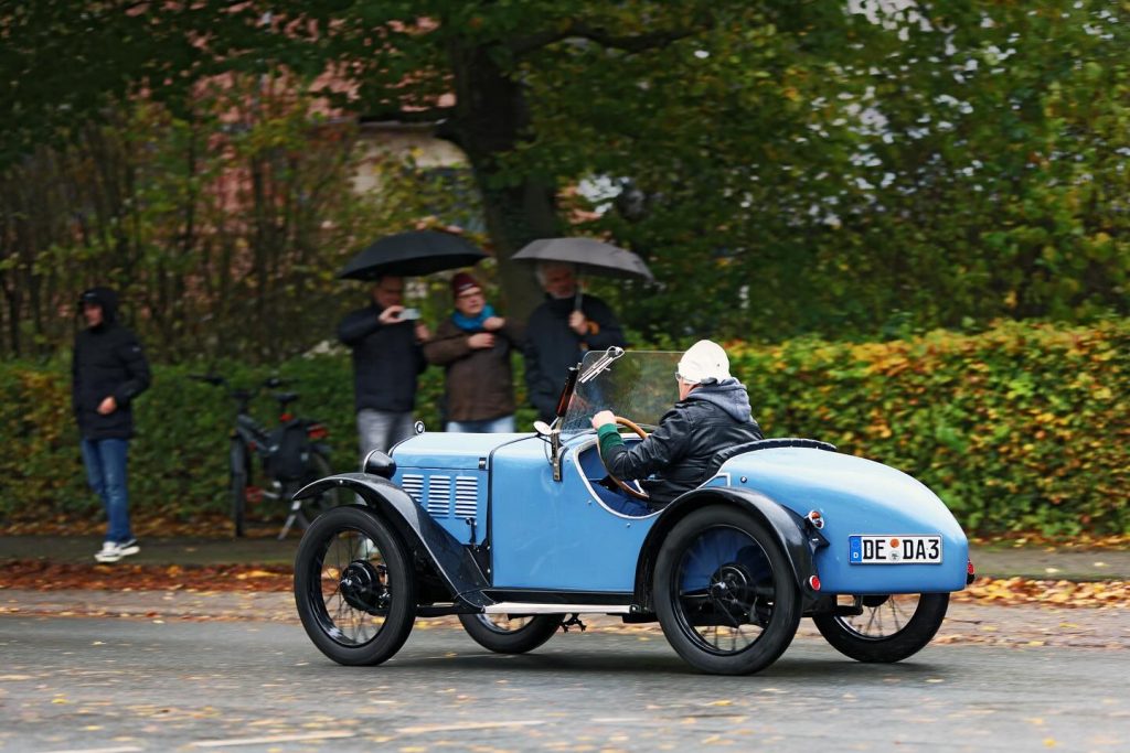 Leider fing es an zu regnen, sodass ich auf eine Mitfahrt im Austin Seven verzichtete. So fuhr Tobias die rund 18 Kilometer lange Strecke zweimal problemlos ab. Beim anschließendem Mittagessen wurde noch viel über vergangene und zukünftige Zeiten diskutiert. Dabei haben wir festgestellt, dass wir wohl die schönsten Zeiten erlebt haben und die Jugend kaum noch an den „Schnauferln“ interessiert ist.