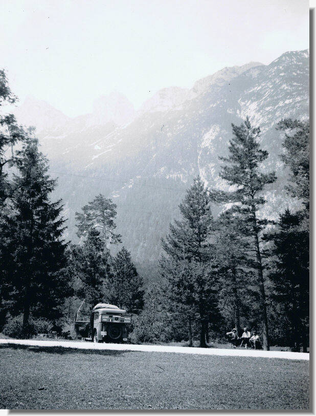 Die Kesselbergrennstrecke wird mit Bravour gemeistert. Oben angekommen hörten sie heimatliche Stimmen von Wanderern aus dem Kreis Eupen, Alhorn und Astenet. Diese sind von dem Vorhaben bis Rom zu fahren so begeistert, daß sie sich voller Ehrfurcht vor ihnen verbeugen. Bei Scharnitz wird die Grenze überfahren und eine Mittagsrast eingelegt.