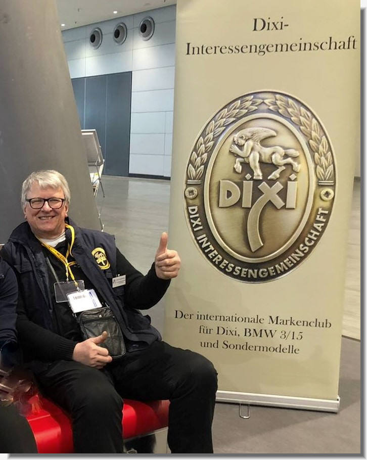 Der erste Clubpräsident dieses internationalen Clubs war Prof. Dr. Gottfried Müller. Das Foto zeigt ihn auf dem Clubstand bei der Retro Classic in Stuttgart. Inzwischen ist der Nachfolger Günter Reimer.