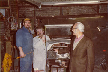 Dann begann ich mit der Restauration der Mechanik. Damals ahnte ich noch nicht, dass die Fertigstellung sich über Jahrzehnte hinziehen wird. Ein Hallenwechsel stand an, alles musste quer durch Düsseldorf in den Norden der Stadt verlagert werden. Nun begann wieder das Restaurieren. 1991 machte ich mit dem leider inzwischen verstorbenen Johannes Buckting die ersten Entwürfe für die Karosserie. Es sollte was einmaliges sein. Zwischenzeitlich waren unsere Jungs auch schon autobegeistert. Für diese standen auch nun Restaurationen von MINIs an, also wieder eine Ruhepause für mein DA 3 Projekt.